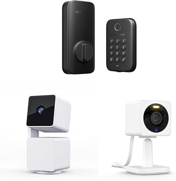 Wyze Lock Bolt, Fingerprint Keyless Entry Door Lock & Cam Pan v3 Indoor/Outdoor IP65-Rated 1080p Pan/Tilt/Zoom Wi-Fi Smart Home Security Camera & Cam OG 1080p HD Wi-Fi Security Camera
