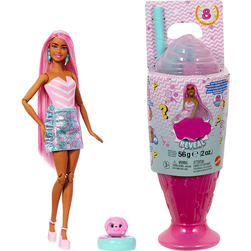 Barbie Pop Reveal Series Fashion Doll & Accessories Set, Treat Series, Sweet Swirl Theme with Pet, 8 Surprises Include Color Change