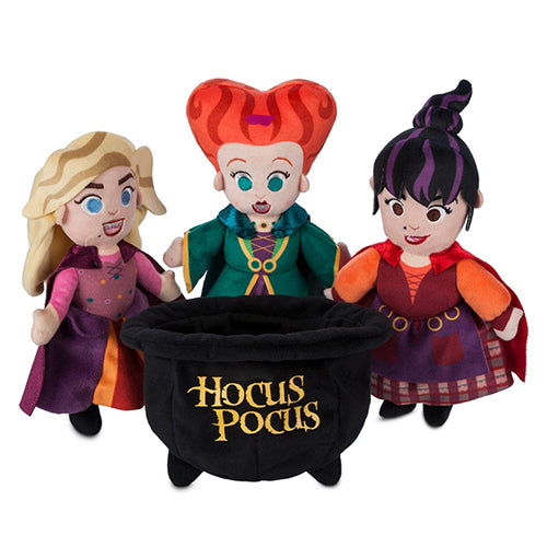 Disney Store Hocus Pocus Sanderson Sisters Plush Doll Set - Sarah, Mary & Winifred - Detailed Plush Sculpting, Shimmering Capes, Soft Velour Cauldron - Hocus Pocus Plushies