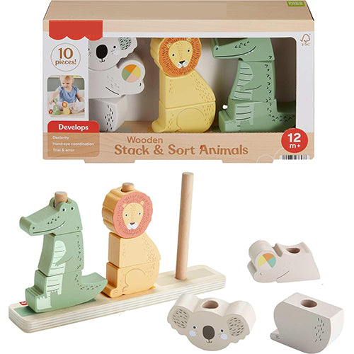 Fisher-Price Wood Baby Toy Stack & Sort Animals, 10 Wooden Pieces for Developmental Play for Infants & Toddlers Ages 1+ Years