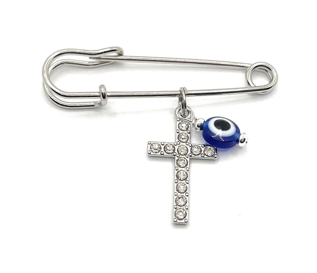 Experience reliable performance with Christening baptism cross evil eye pin. This professionally crafted product delivers...