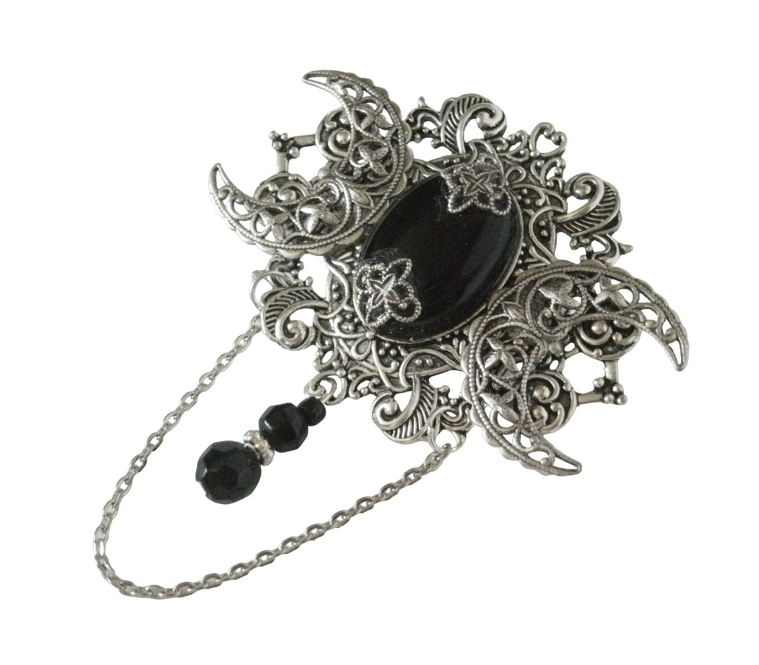 Black Onyx Triple Moon Brooch, handmade jewelry wiccan pagan wicca goddess witch witchcraft gothic cloak pin