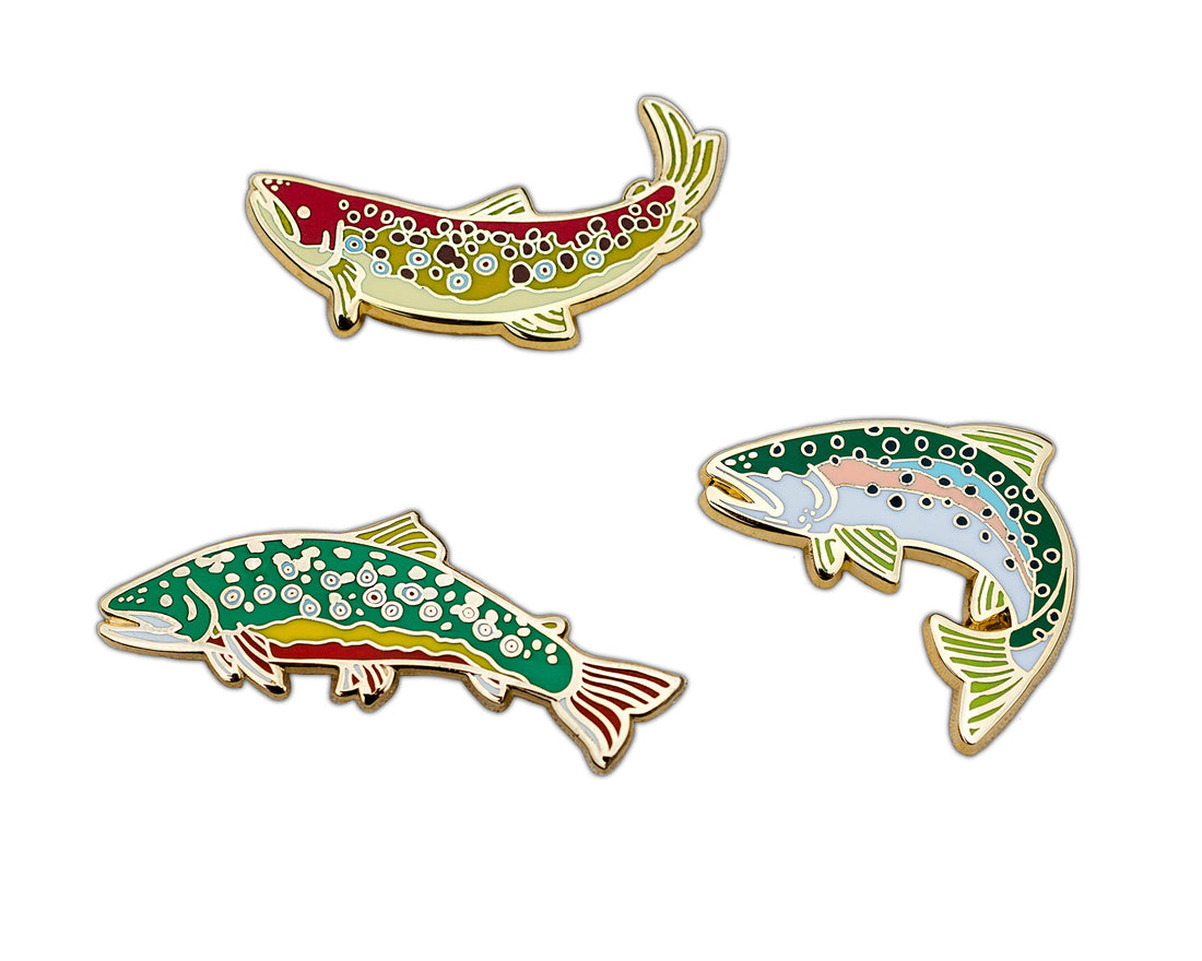 Set of 3 Trout Enamel Pins - Lapel Pin - Badge