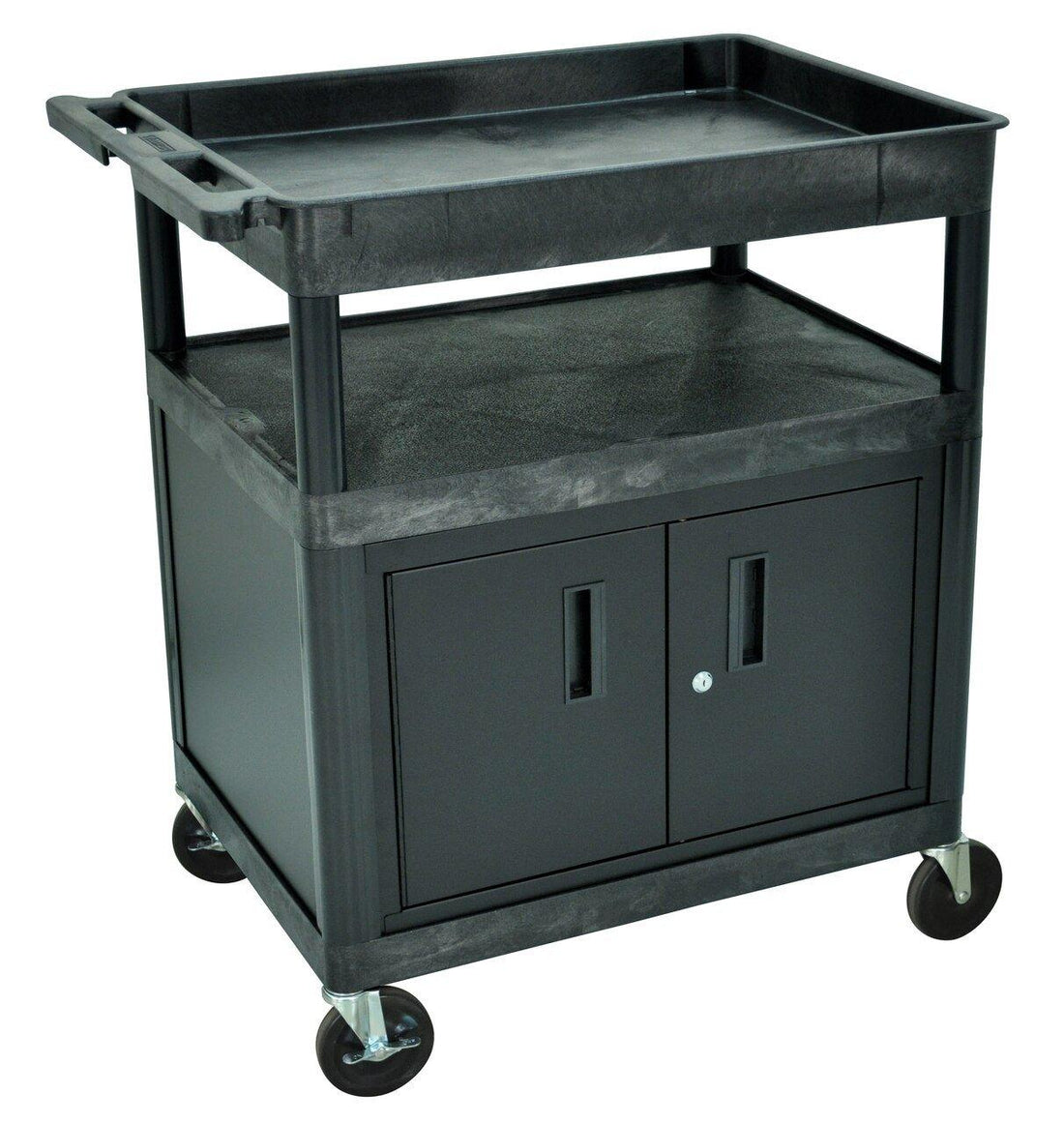 LUXOR TC 3-Shelf Heavy-Duty Utility Cart – 32"x24" – Flat & Tub Shelf Combo