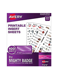 Contains 100 clear inserts compatible with the Mighty Badge by Avery reusable name badge system...