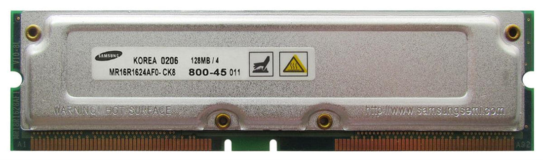 MR16R1624AF0-CK8 - Samsung Rambus 128MB PC800 800MHz non-ECC 45ns 184-Pin RDRAM RIMM Memory Module (Refurbished)