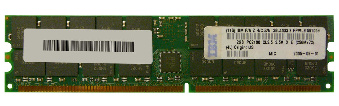 38L4033 - IBM 2GB 266MHz DDR PC-2100 ECC Registered CL2.5 184-Pin DIMM 2.5V Dual Rank x4 Memory Module