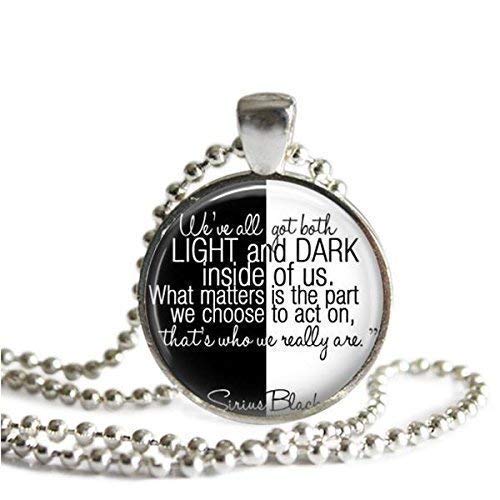 Harry Potter Sirius Black Light and Dark Quote 1 Inch Silver Plated Pendant 24 Inch Stainless Steel Ball Chain Necklace Hancrafted Fan Gift
