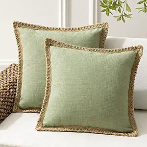 Phantoscope Pack of 2 Farmhouse Decorative Throw Decorative Pillow Cover Burlap Linen Trimmed Tailored Edges, Sage Green, 18 x 18 inches, 45 x 45 cm