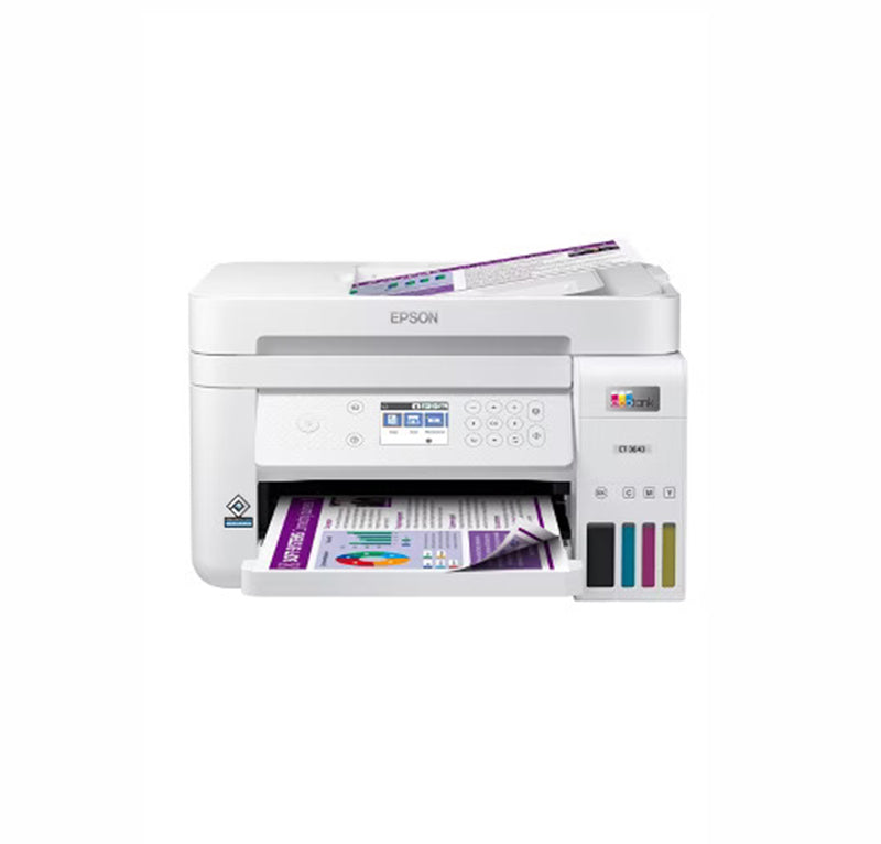 C11CJ61205 - Epson EcoTank ET-3843 5760 x 1440 dpi 4.5 ppm USB, Ethernet, Wi-Fi Automatic Duplex Printing 2.4-inch LCD Display Desktop Cartridge-Free SuperTank Color InkJet All-in-One Printer
