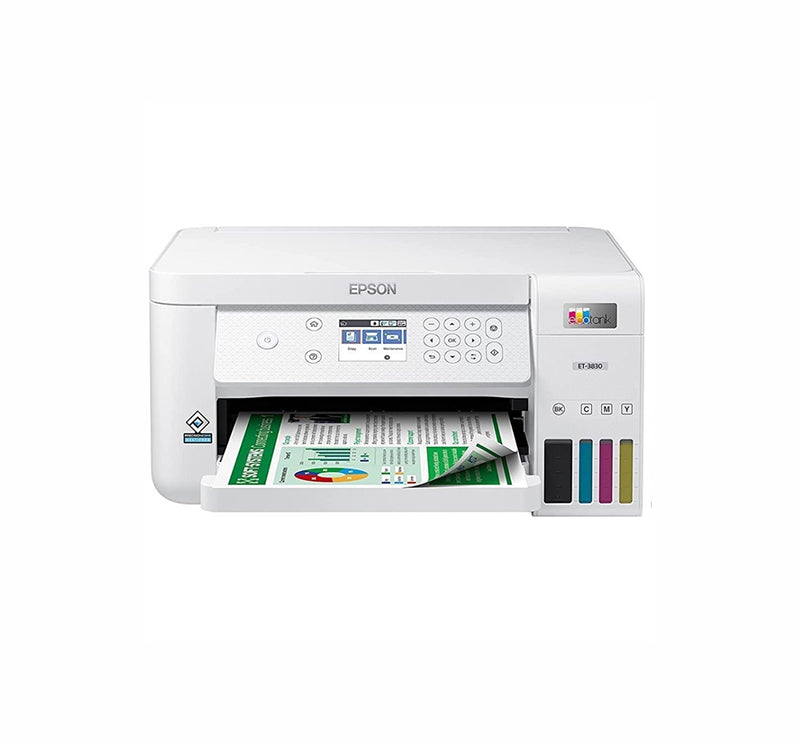 C11CJ62201 - Epson EcoTank ET-3830 5760 x 1440 dpi 8 ppm USB, Ethernet, Wi-Fi Automatic Duplex Printing 2.4-inch LCD Display Desktop Cartridge-Free SuperTank Color InkJet All-in-One Printer