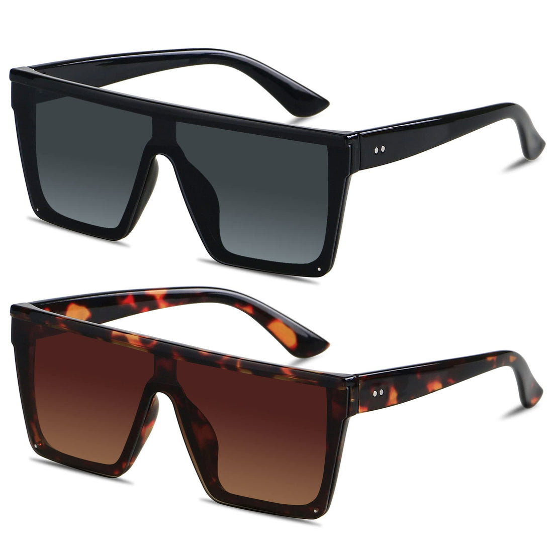 LYZOIT Square Oversized Sunglasses for Women Men Big Flat Top 2 pack Fashion Shield Large UV Protection Rimless Shades Black Tortoise Sun glasses