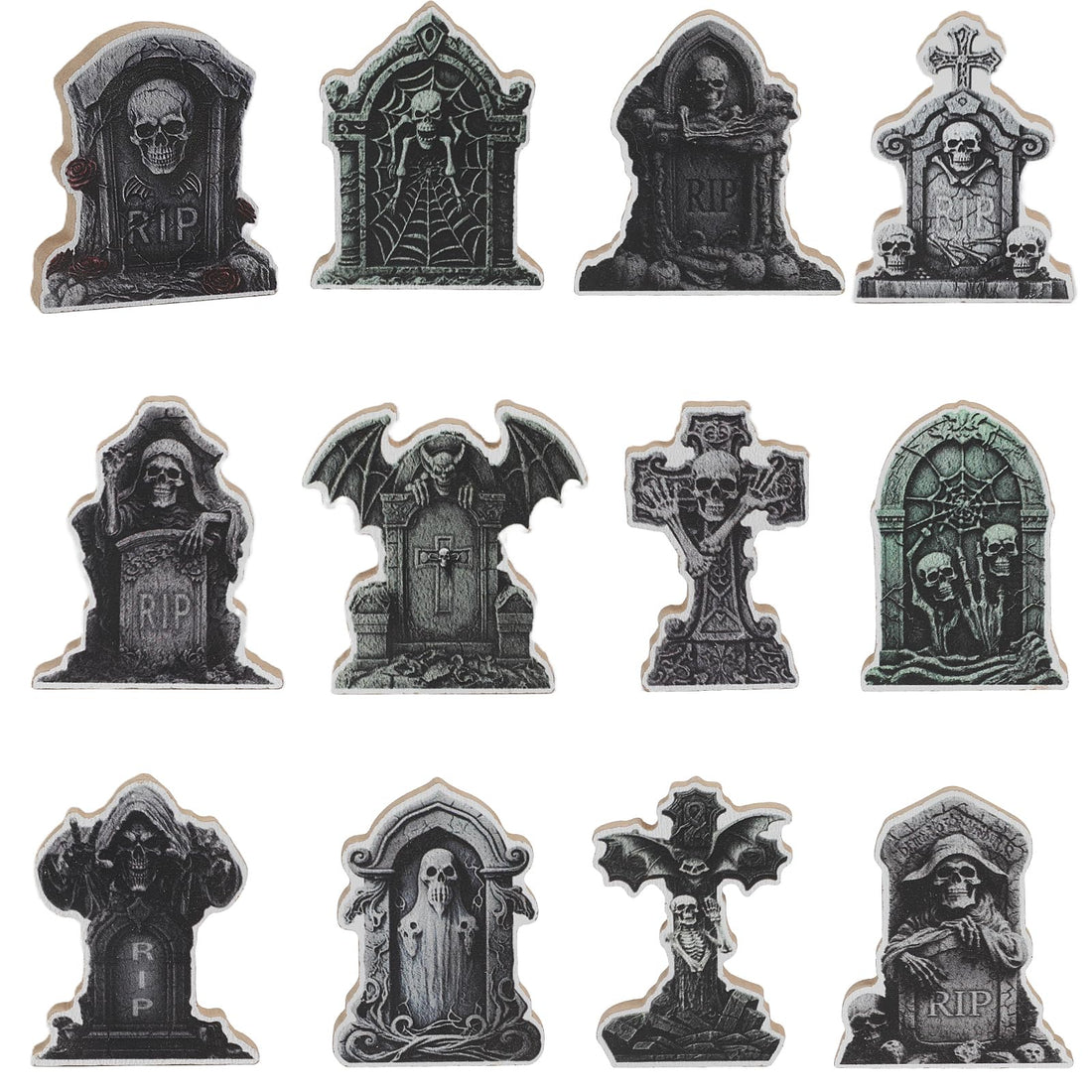 FOIMAS 24pcs Miniature Halloween Tombstones,Mini Wooden Tombstone Figurines Gravestone Decor for Halloween Village DIY Craft Graveyard Scene Dollhouse Decoration Supply
