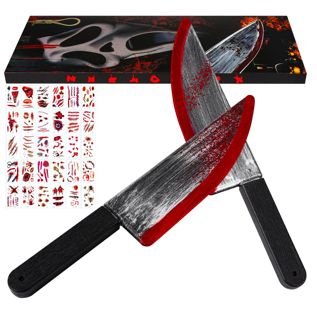 Buy 2Pcs Fake Chucky Knife with 30pcs Tattoo Stickers,Halloween Bloody Ghostface Props Toy Knife Set...