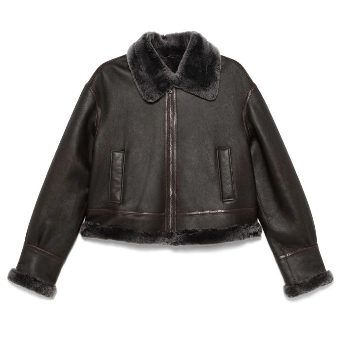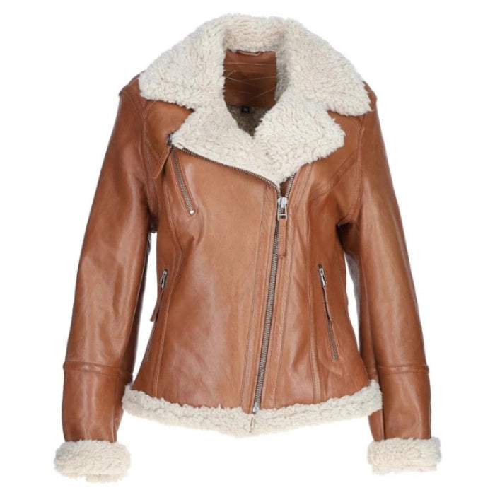 Women's Waxed Sherpa Fur Leather Jacket