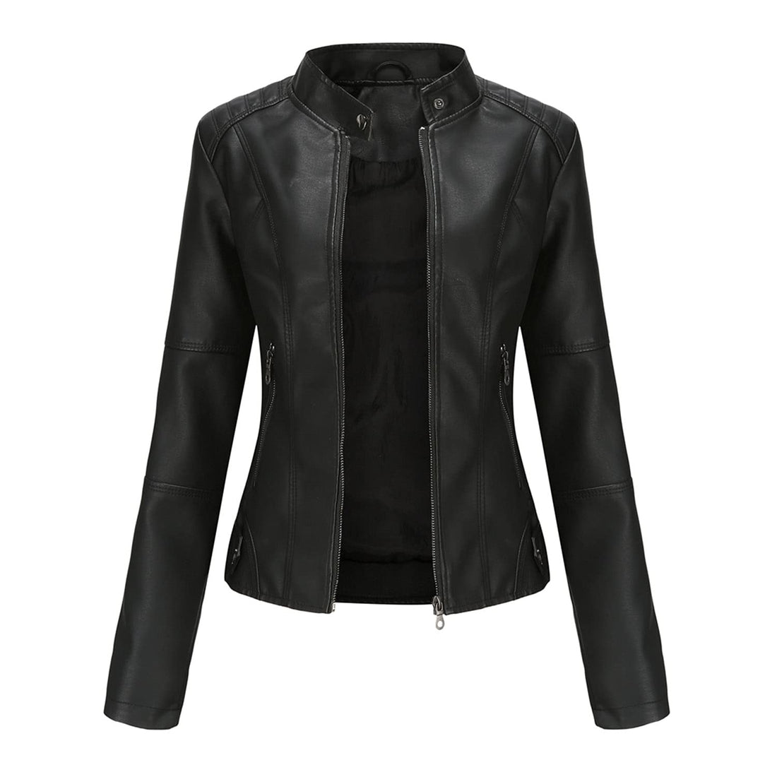 Upgrade your daily routine with Yousify Womens Faux Leather Jacket Casual Zip Up Motorcycle Long...