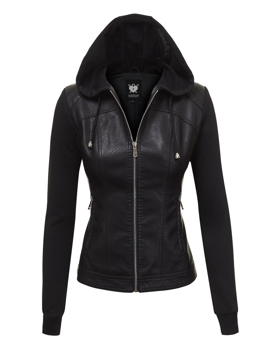 Lock and Love Women's Faux Leather Moto Biker Jacket Coat with Removable or Non-Removable Hood
