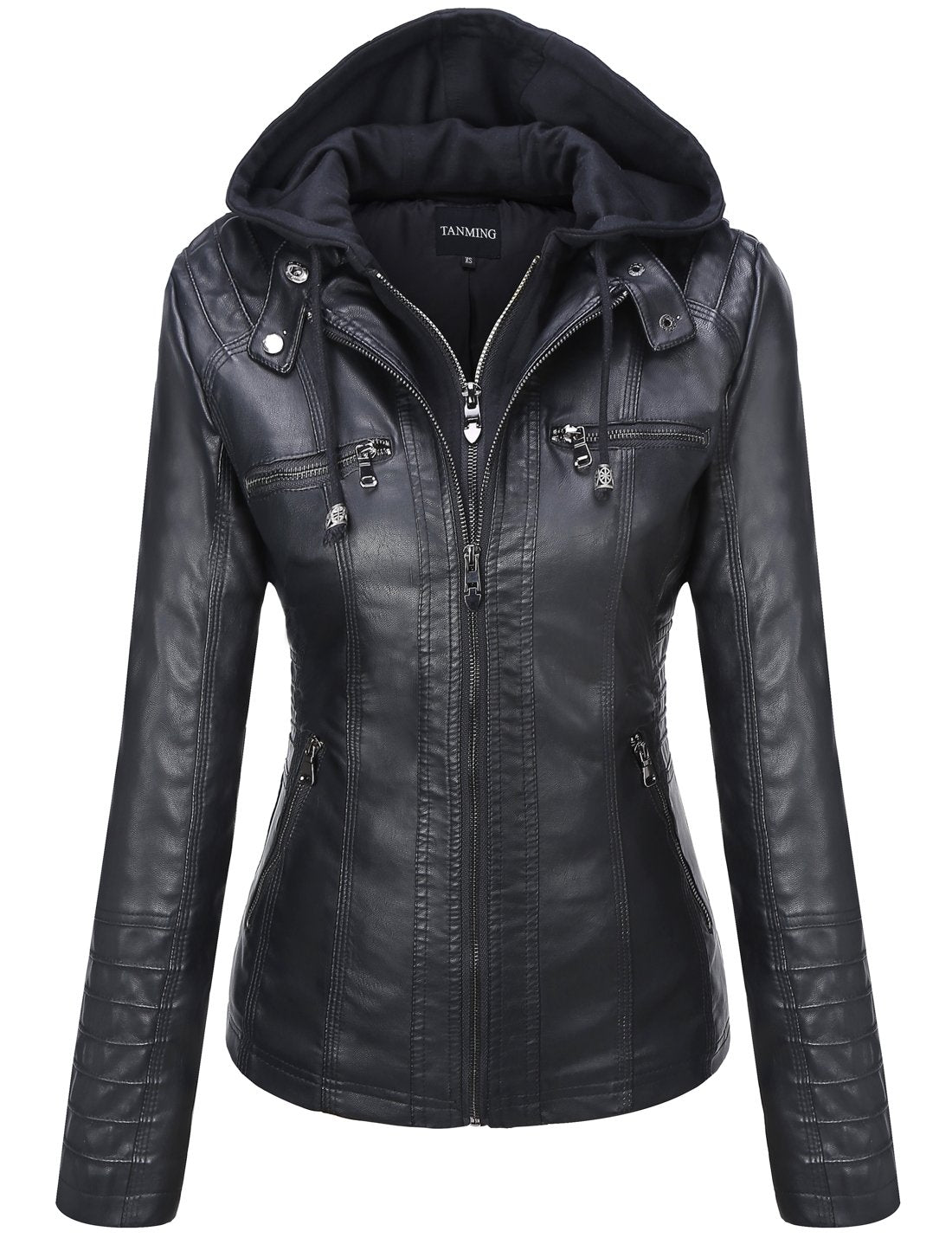 Bring quality and style to your life with Tanming Womens Faux Leather Jacket Hooded Moto...