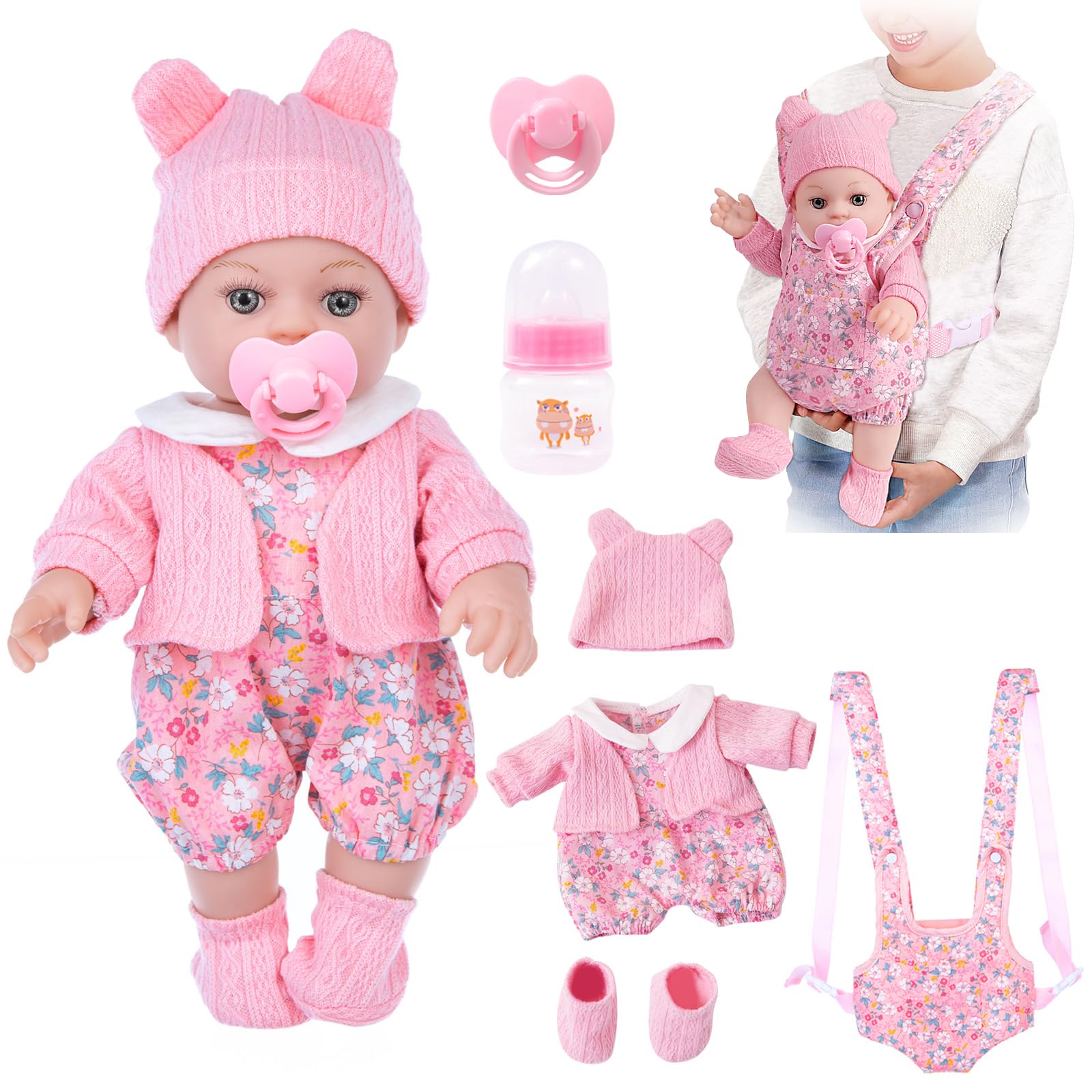 Buy 12" Baby Doll Set with Clothes and Baby Carrier for Dolls Reborn Baby Doll Accessories Include Feeding Bottles Nipple Toy Stuffs for Kids Age 3+ Online at Best Price | Shopiluxe