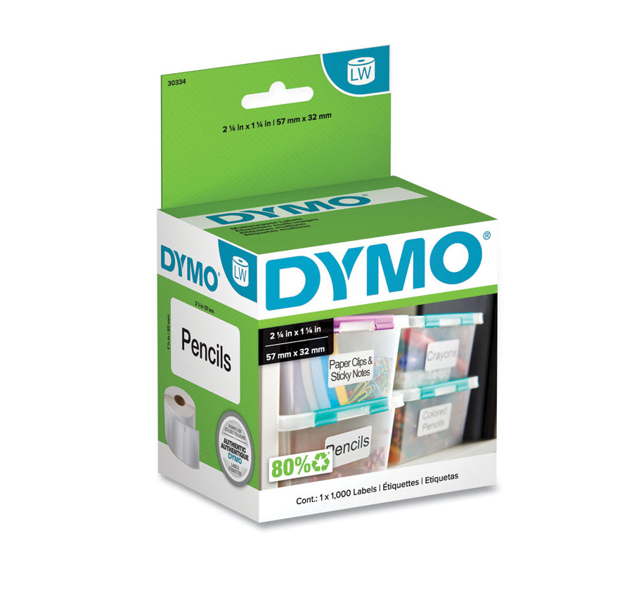 30334 - Dymo White 2-1/4In X 1-1/4In Labels. Size: 2-1/4In X 1-1/4In, 1000 Labels/Roll, 1 Rol