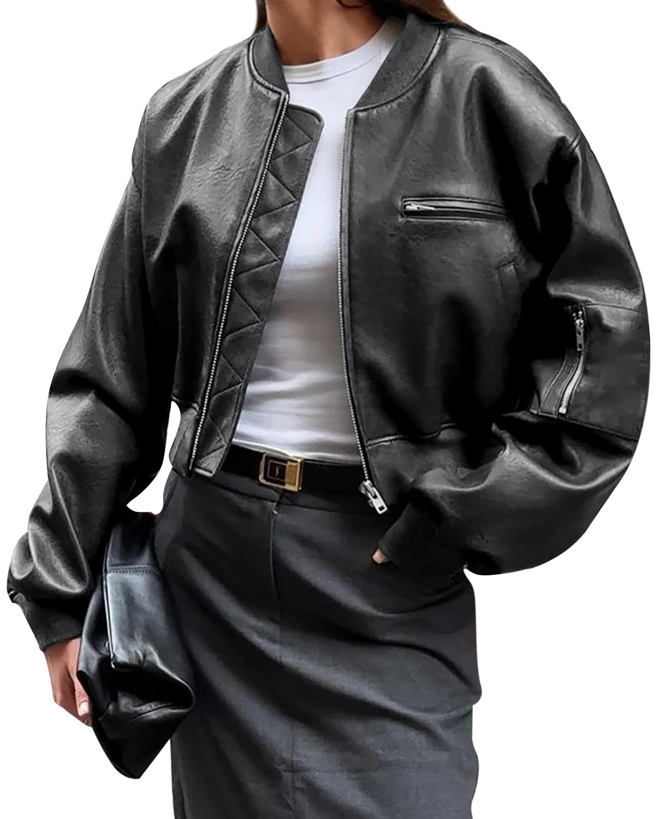 Transform your space with Cicy Bell Womens Faux Leather Bomber Jackets Baseball Collar Zip Up Cropped Biker Coat with Pockets. This stylish product is crafted with care. suitable for everyday use.