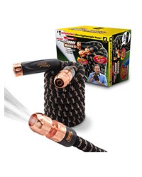 The #1 expanding hose in the world just got better with 4 incredible innovations! One: the brand-new Pocket Hose Copper Bullet is the first and only Pocket Hose infused with REAL copper! Just like the copper plumbing inside your walls, this lightweight Copper Bullet helps keep your water outside lead-free! Two: we’ve increased the size of our connectors so they’re 20% larger! This makes it easier to screw onto your faucet and easier to hold. Three: our fabric is now 3 times stronger! Four: our inner tube is made with three layers of thick latex, making this truly the strongest Pocket Hose ever made! Just turn on the water and watch Copper Bullet go — in just a few seconds, it grows to a full-size ¾-inch power hose! And when you need to get water to a hard-to-reach place, don’t struggle with a heavy hose — keep it lightweight with Pocket Hose. Turn the water off and the Copper Bullet squeezes itself dry as it puts itself away. The Copper Bullet never kinks, knots, or tangles.