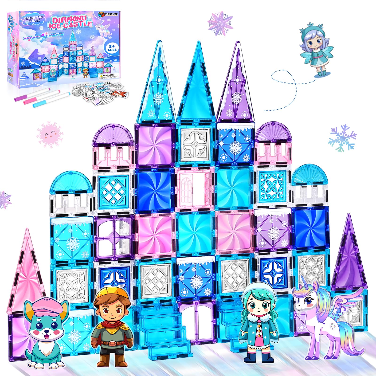 Buy Princess Castle Magnetic Tiles 112PCS with 4 Dolls 2 Stairs & Magnetic Art Decors Kit, Diamond Blocks Magnet Tiles for Kids 3-5 4-8-12, Magnet STEM Princess Toys for 3 4 5 6 7 8+ Girls Kids Xmas Gifts Online at Best Price | Shopiluxe
