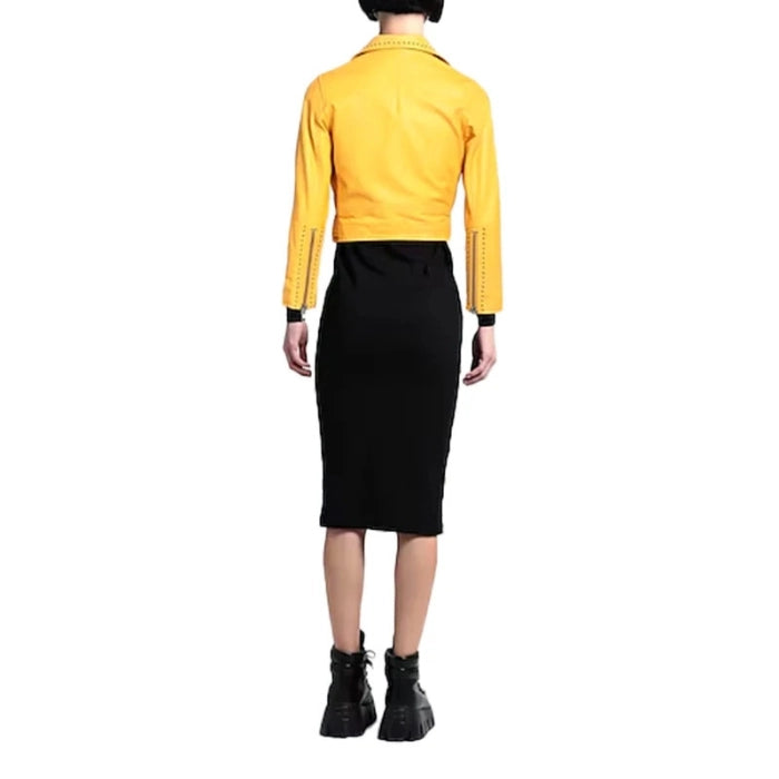 Your ticket to timeless charm, this yellow biker crope leather jacket let you feel the world faster, freer, and just a little more magical.