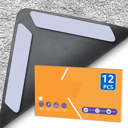 ZONGOOL 12 PCS Rug Tape, Reusable Washable Grippers for Rugs, Double Sided Non-Slip Rug Pads for Hardwood Floors, Rug Stoppers to Prevent Sliding, White